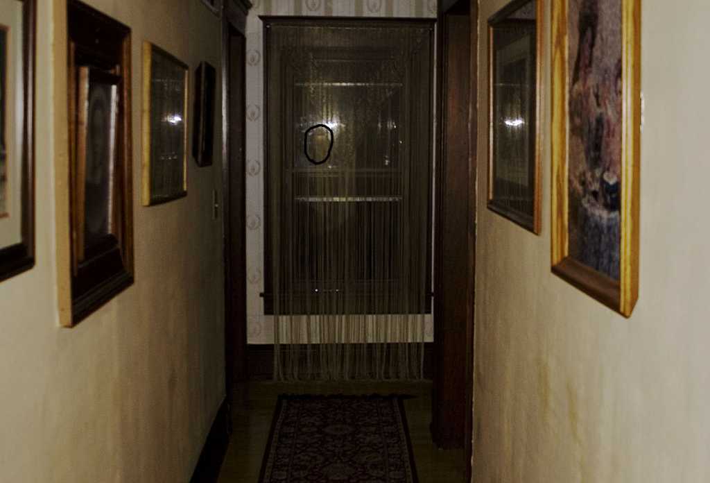 While investigating a Bed & Breakfast in Wisconsin, I snapped approx 200 photos. The 2nd to last photo taken is posted below. As you can see, it's taken down a hallway towards a 2nd floor window. There is no balcony outside and the window is approx 30 feet off the ground. There is nothing out of the ordinary in this photo: